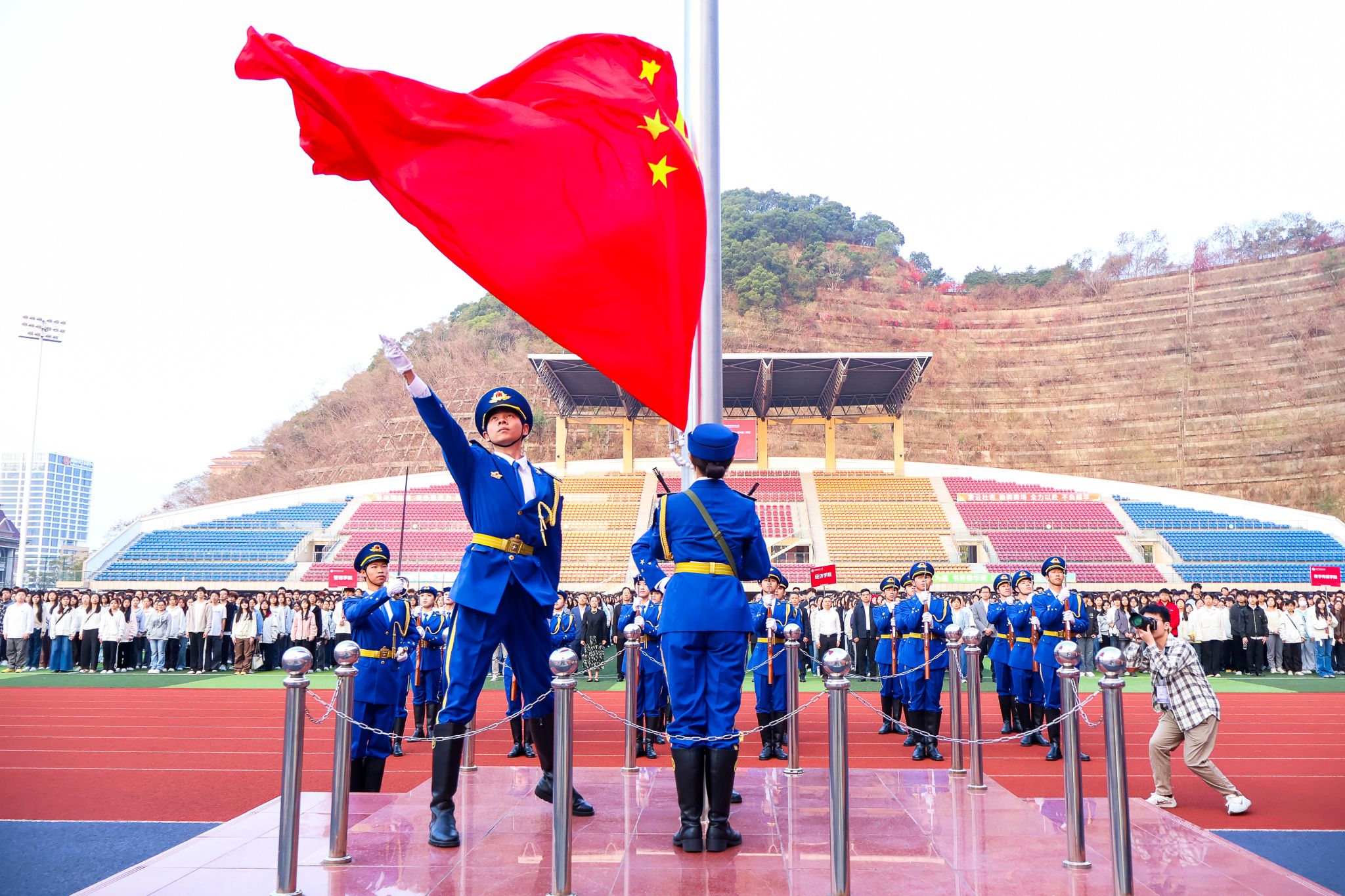 学校举行新学期升国旗仪式。3月9日清晨,我校在西丽校区留仙洞园区体育场、西丽湖园区体育场以及香蜜校区体育场同时举行新学期升国旗仪式。学校党委副书记、校长许建领,党委副书记、纪委书记何莉,副校长李小元等出席升旗仪式,学生处、校团委等相关部门领导,各学院党委书记、副书记、辅导员以及2025级全体学生参加活动。7:30分,升国旗仪式正式开始。深圳职业技术大学国旗护卫队迈着铿锵步伐、精神抖擞护卫国旗入场。雄壮激...