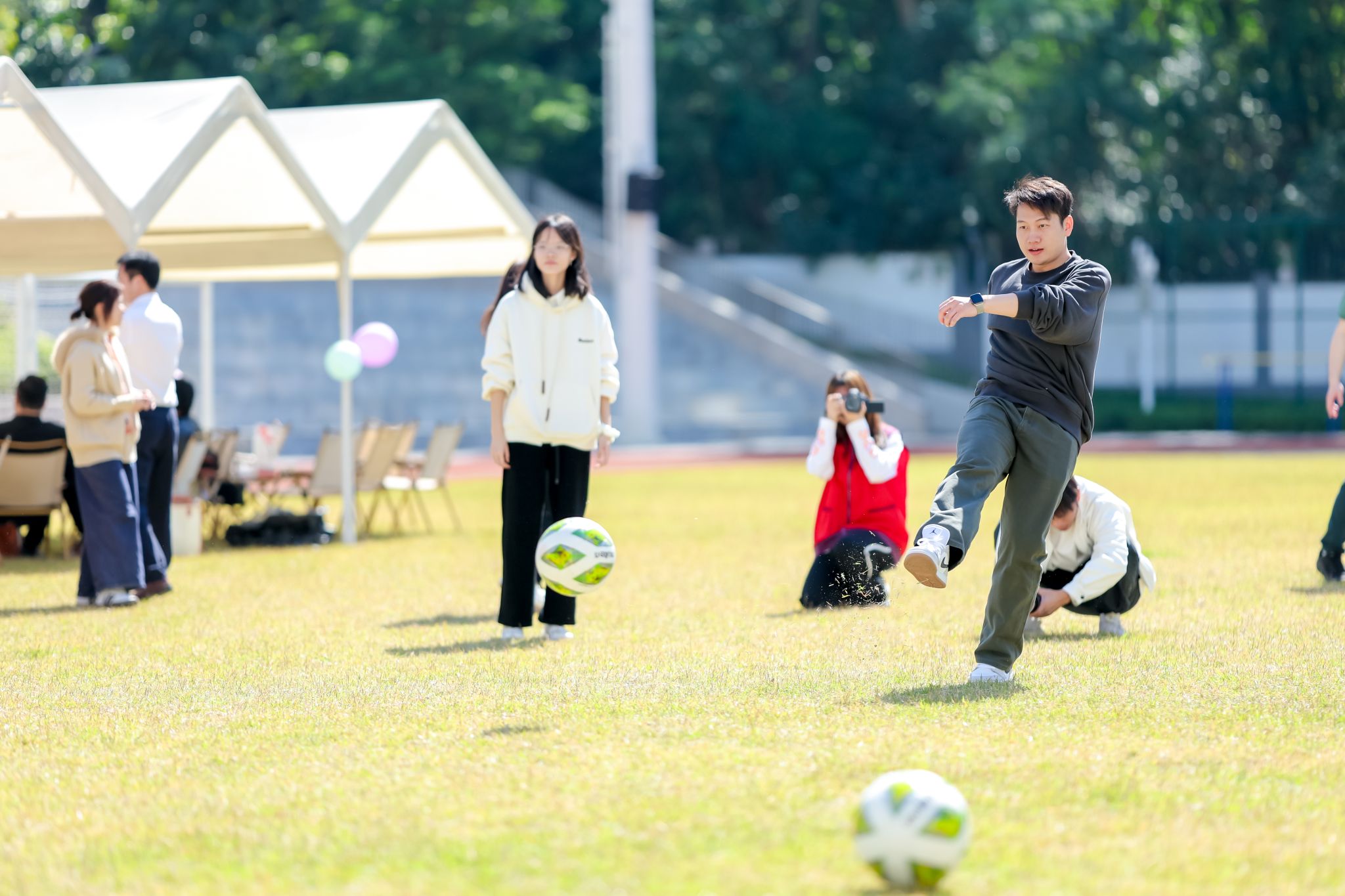 傍晚时分,西丽湖园区足球场迎来一场特殊的足球友谊赛。深职大教工队与2005届校友元老队激烈角逐,挥洒汗水。这场跨越二十年的绿茵之约,延续了师生与同窗间的深厚情谊。