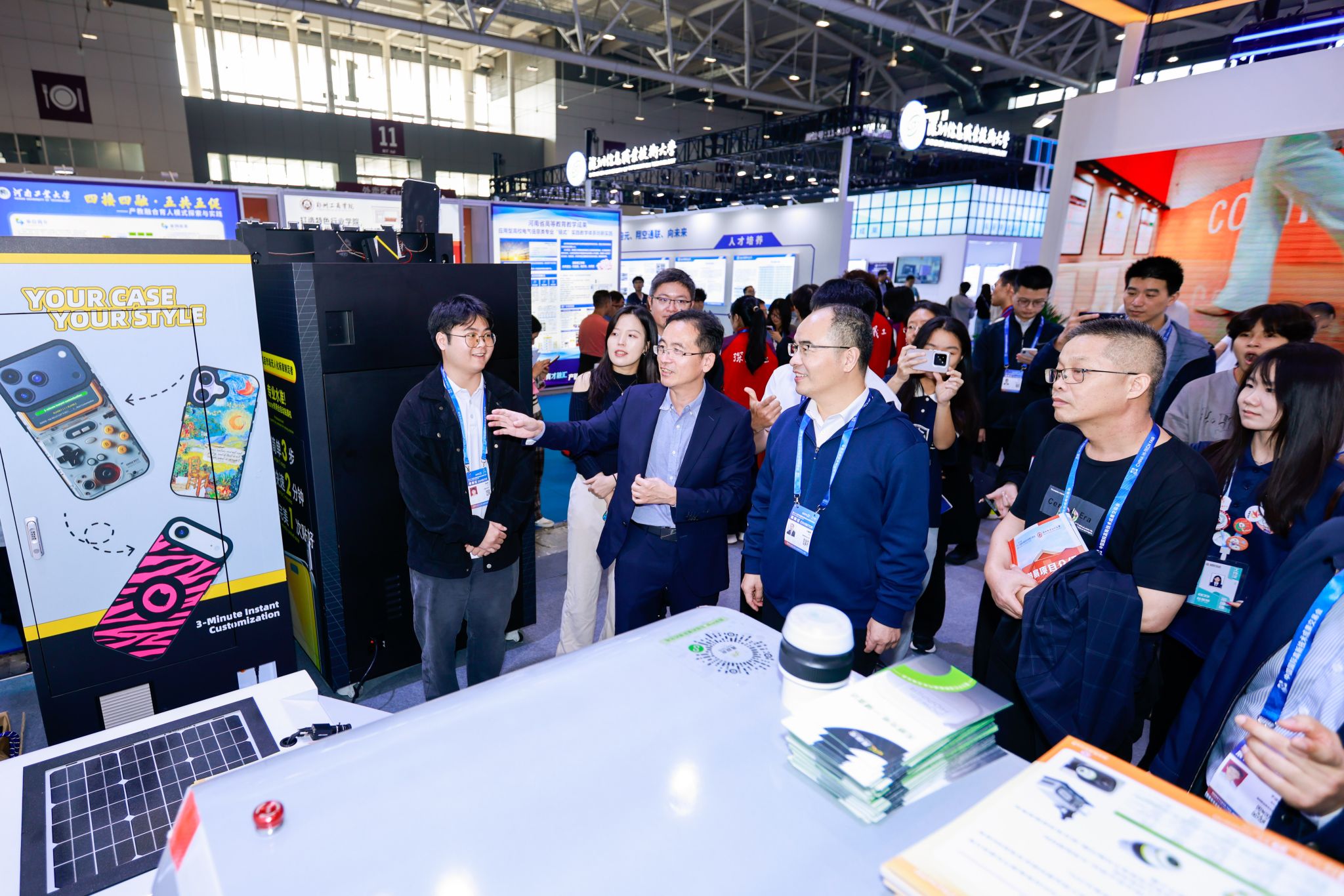 AI全自动手机贴膜机惊艳全场本届高交会,深职大展位首次展出的“膜力无限”项目——AI全自动手机贴膜机引发广泛关注。该项目为中国国际大学生创新大赛金奖项目,致力于成为全球无人化手机贴膜行业领导者。这款由郑付成博士带领学生和企业团队研发的设备,深耕手机后市场,以“90秒快速完成贴膜+全球智能化运维”为核心优势。设备攻克“多模组联动清洁”“自适应稳态贴合”等核心技术,最快90秒完成贴膜。设备有 5400 张货道容量,支持 24 小时无人值守,结合云原生 SaaS 系统实现耗材管理与远程运维。完美解决了海外手机人工贴膜价格高、效率低、效果不稳定、行业需求迫切等痛点。