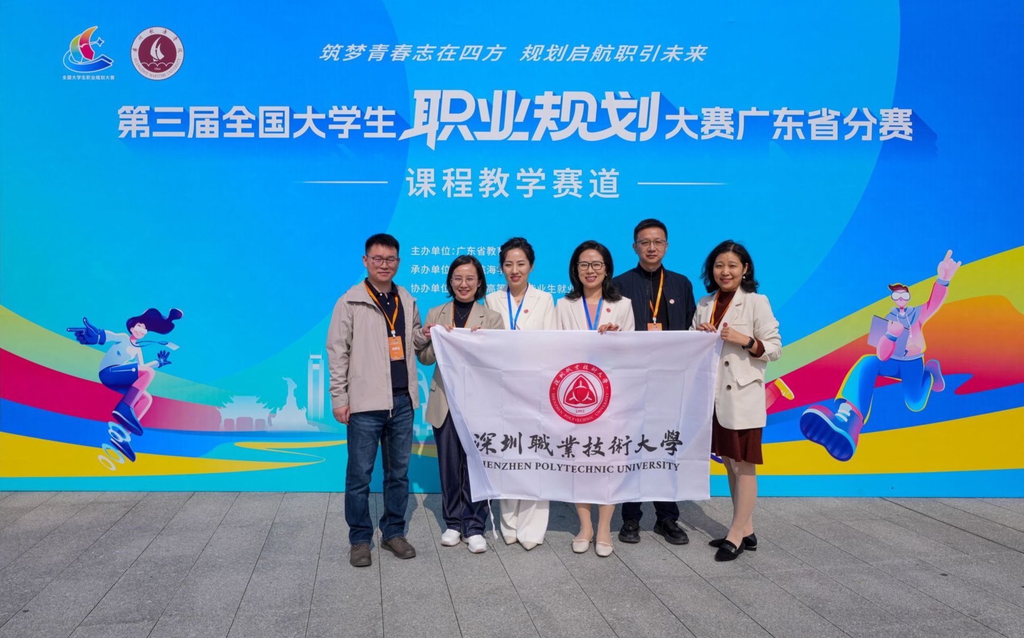 本次大赛分设课程建设情况汇报、教学展示及互动答辩等多个环节,共有广东省各高校125名选手报名参赛。任源梅以“专就融合,五维创新:新能源汽车领域生涯建构的探索与实践”为题,系统阐释了我校《大学生职业规划与就业指导》课程如何深度对接比亚迪等龙头企业,通过活态教材、三元师资与实战闭环,赋能学生从专业学习到岗位胜任,展现了鲜明的职教特色与扎实的教学水平,最终以现场第一名的成绩斩获决赛金奖。刘妍伶以“生涯导航,行动致远:以行动为导向的全周期生涯课程改革的深职探索”为题,生动讲述了课程的改革历程与特色创新,展现出扎实的教学功底、清晰的改革思路与鲜活的实践成果。