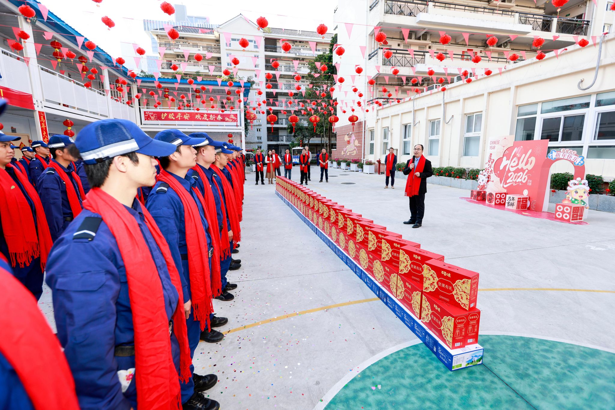 团年饭前,校领导还亲切慰问了食堂、宿管、安保等一线工作人员,感谢他们节日期间默默守护校园安全与运转。